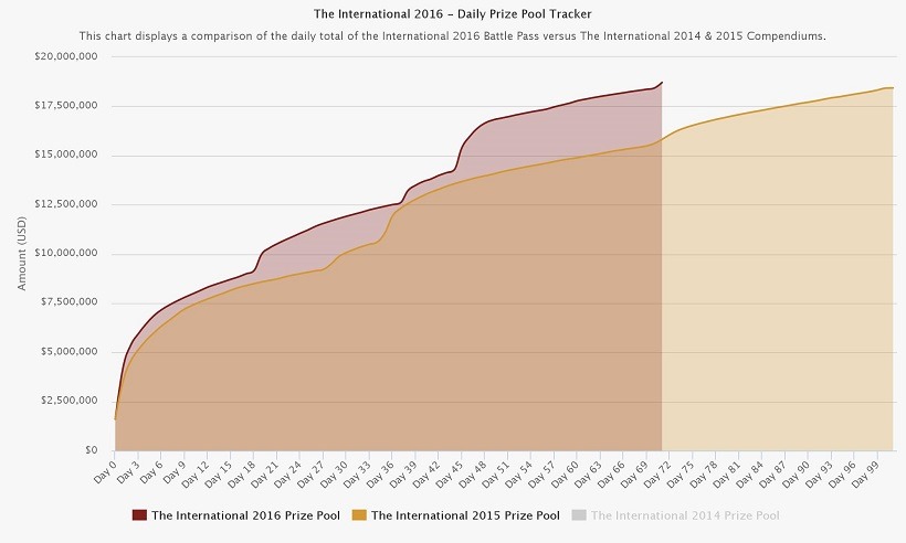 If we take a closer look at the prize pool tracker, it’s clear that 2015 saw an upward trend going up roughly $3 million in the final days of the competitions. We are now at Day 70 of the Compendium, and in 2015 the prize pool sat at $15,816,027.