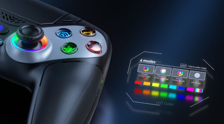 Change the controller’s look instantly by pressing the Lighting button once to switch colors. Hold it for three seconds to enable the breathing effect or turn the lights off. The LED system adds both style and practical visual feedback during gameplay.