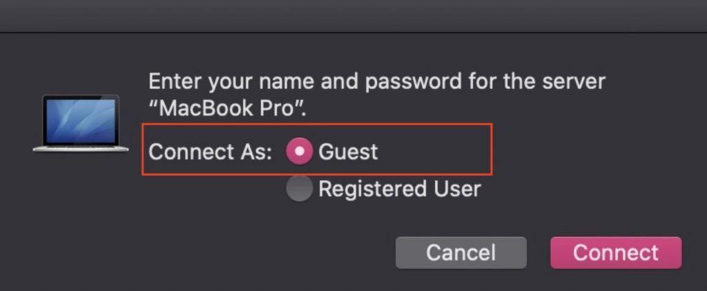 - Double-click the detected M2 Mac and go to connect As, and then click Guest and tap Connect button.