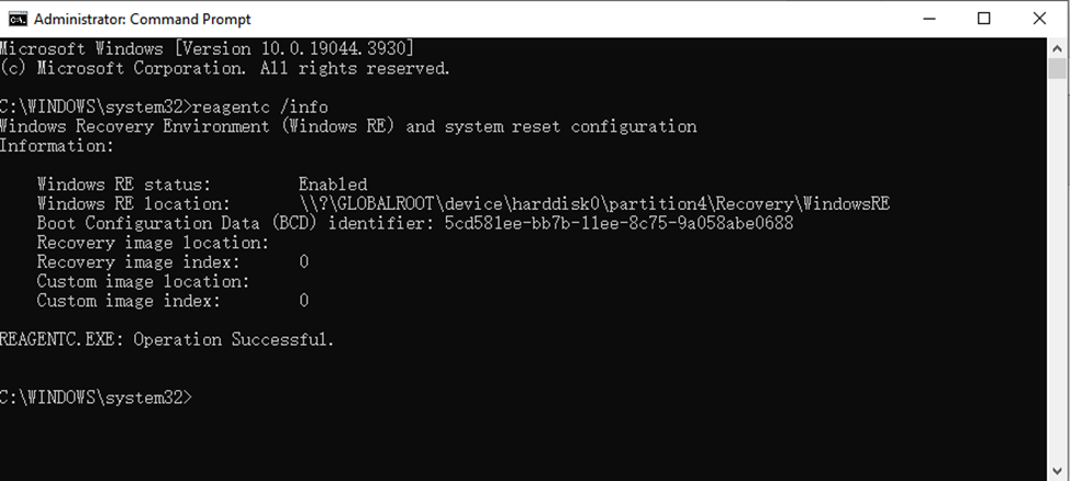 - reagentc /info (This will check if WinRE is enabled).