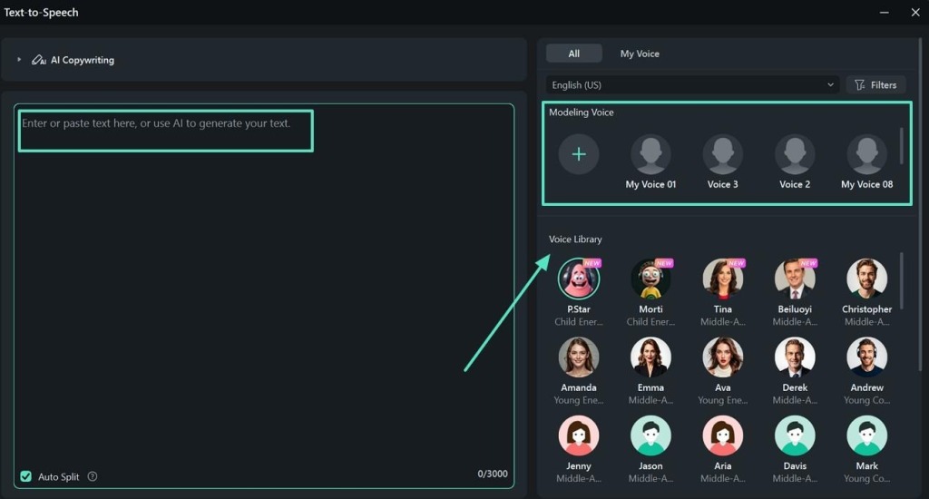 Some creators prefer writing instead of talking while recording short videos. Text-to-Speech turns typed text into voices that sound clear and real. You pick voices, tones, or styles from the library to fit the story’s emotion well. It’s great for guides, reviews, and tutorials made on tight schedules.